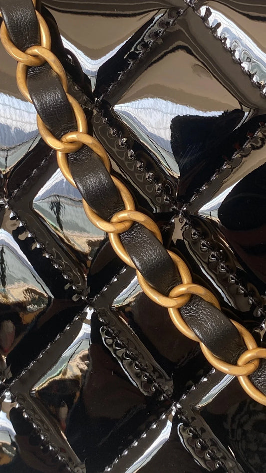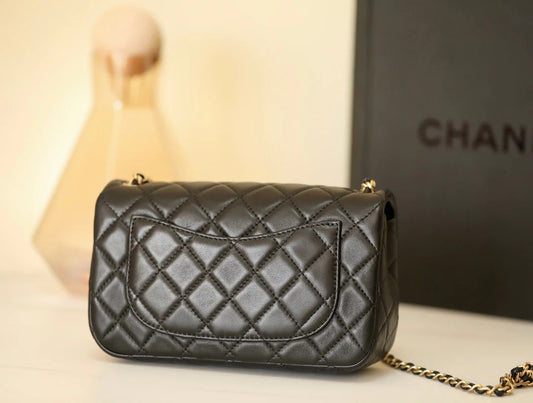 0528 Mini Rectangular Pearl Crush Quilted Black Lambskin Gold Hardware