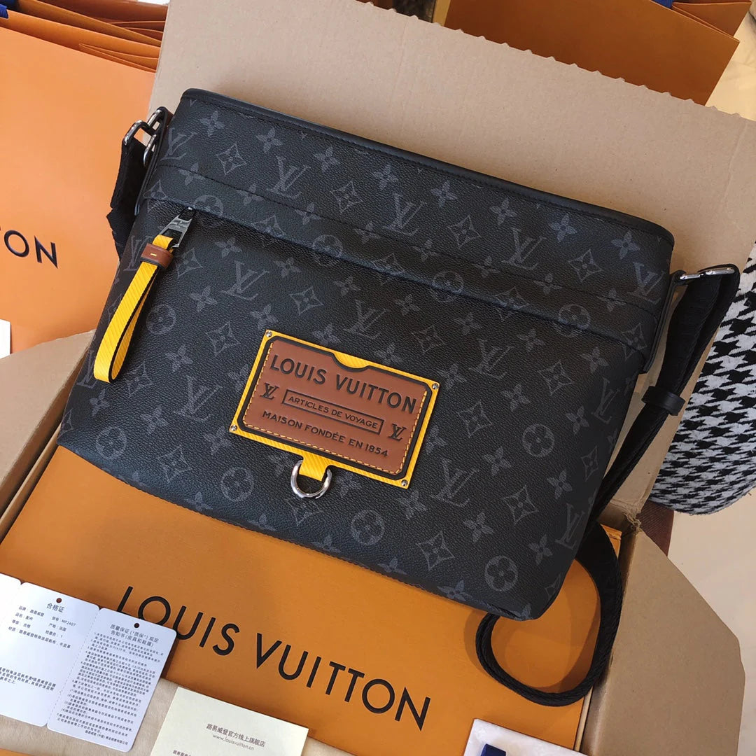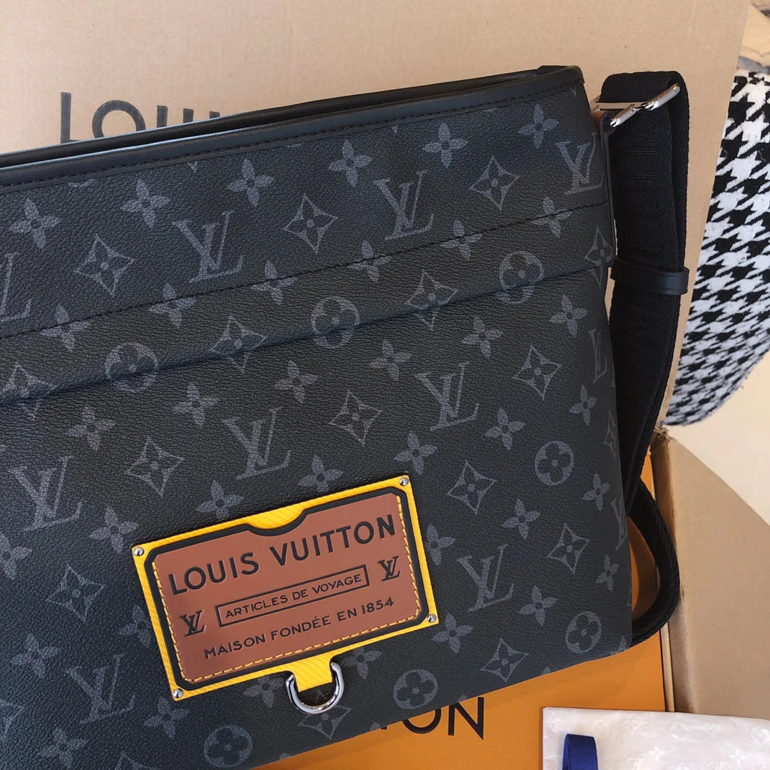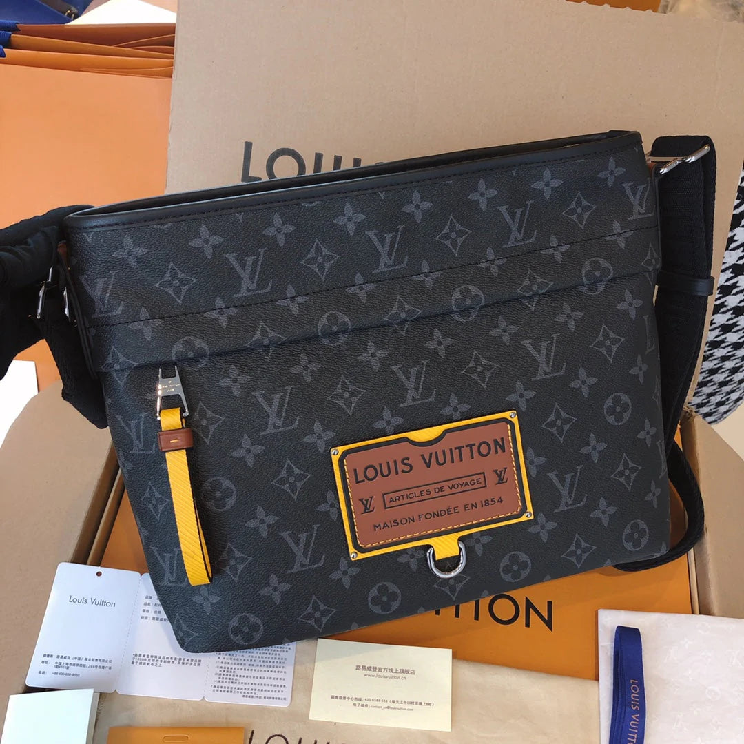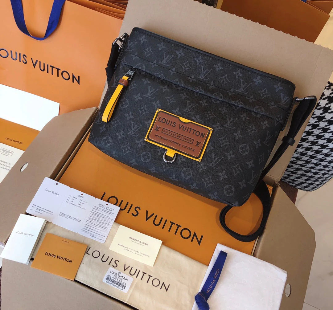 Men's messenger Bag single shoulder crossbody bag. Features 1. Online shopping packaging 2. Original imported hardware accessories 3. Original wax line 4. Original PVC➕ canvas with a faint fragrance 5. Dustproof bag inner label ➕ inner label of bag 6. The oil edge and closing position are exquisite