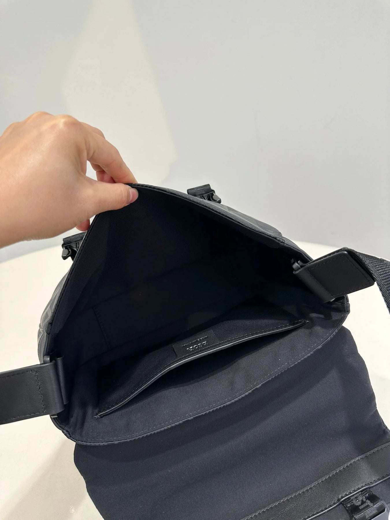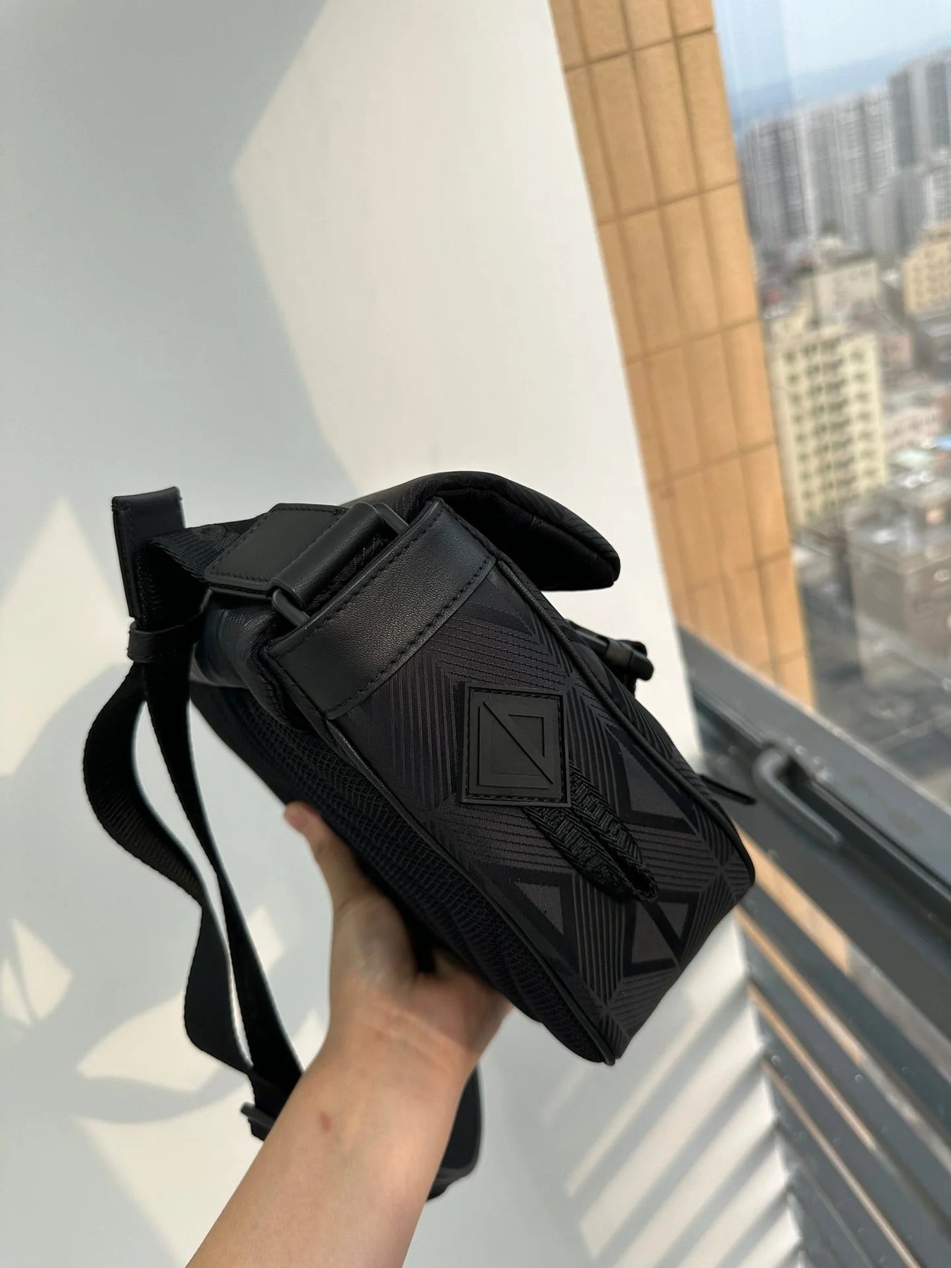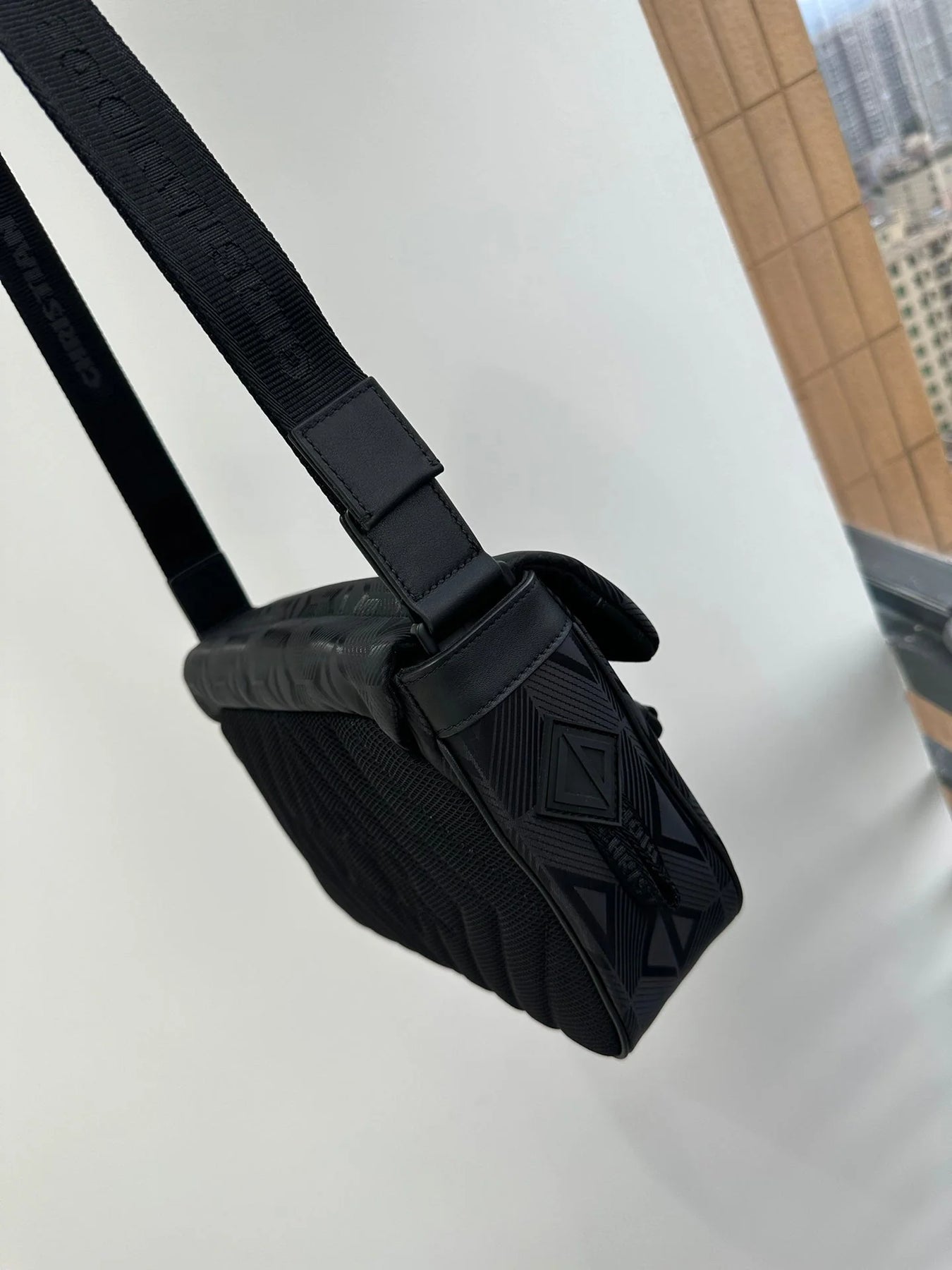 The new black nylon ski series one-shoulder oblique span bag, inspired by the classic messenger bag elements, reinterprets the classic design of the men's ski limited series, is a technical fabric to be decorated with the brand's eponymous pattern, with rainbow and reflective effects, the fabric is light and flexible, good gloss, and the material is durable, dust, rain and easy to manage. The side is decorated with a signature rubber patch, the top zipper and clamshell open and close design, the inside has an inner sticker bag, a large space, the capacity can hold the daily needs, the details are perfect, the back is quilted technological mesh woven pad, decorated with three-dimensional relief logo, soft and soft back is very comfortable. With the adjustable shoulder strap decorated with padded leather inserts, the upper class comes out immediately, very versatile, casual, neutral bags for both men and women, how to match all look good! Concave shape to take it is also a bar drop without problems, practical super bag, recommended